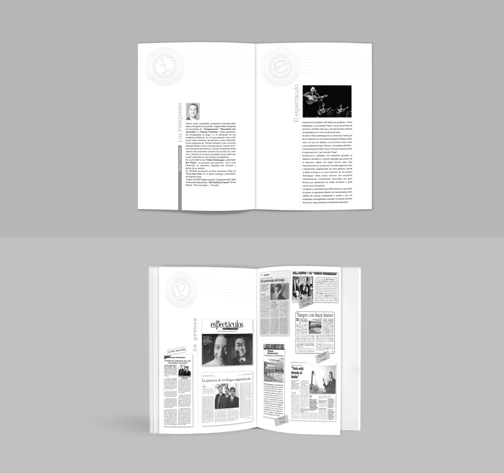 Diseño de logo - Diseño de digipack: Tangus Bonaerensis (primer cd) - Propulsión a Tango (segundo cd) Ruinas de Tango (tercer cd). Diseño de Carpeta de Presentación - Diseño de postales.